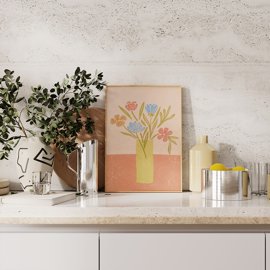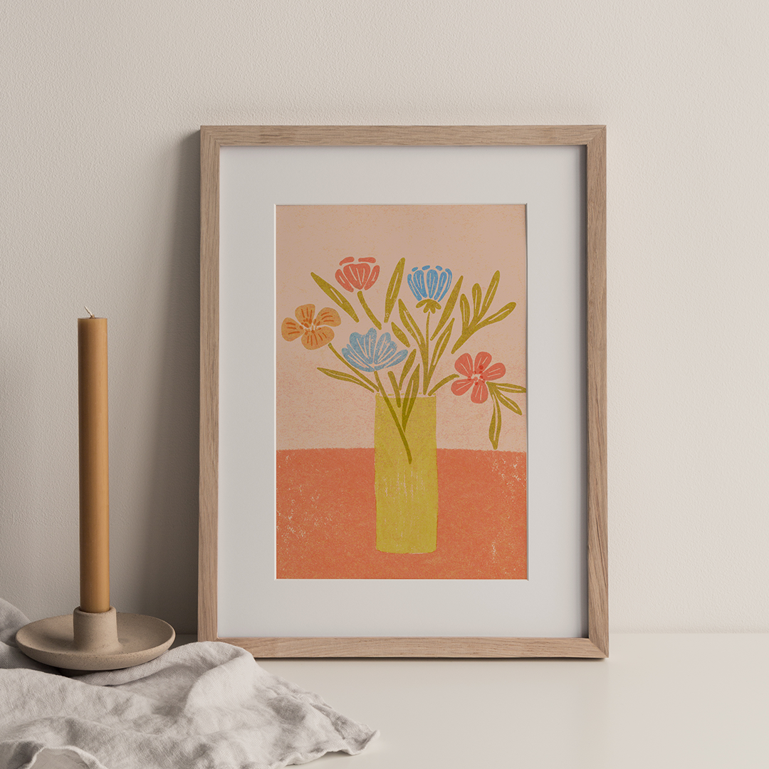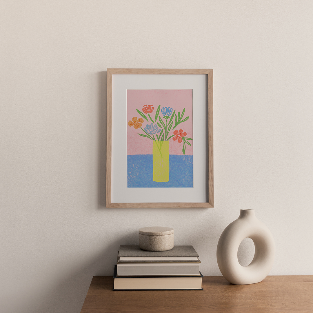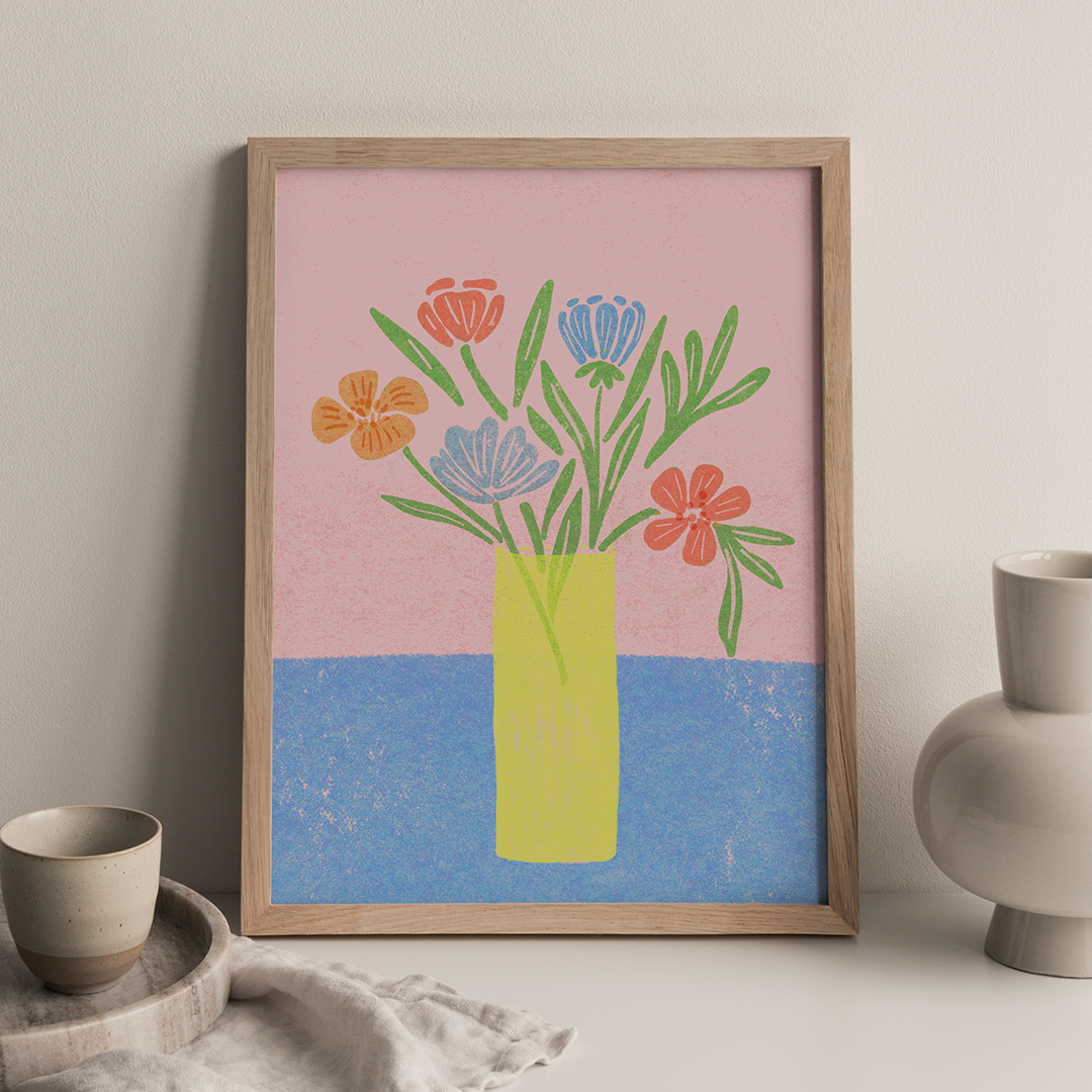 Brighten up your space with this illustrated art print inspired by risograph printing.