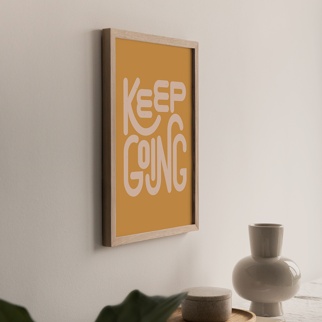 Find inspiration and motivation to push forward with this uplifting “Keep Going” typography print.